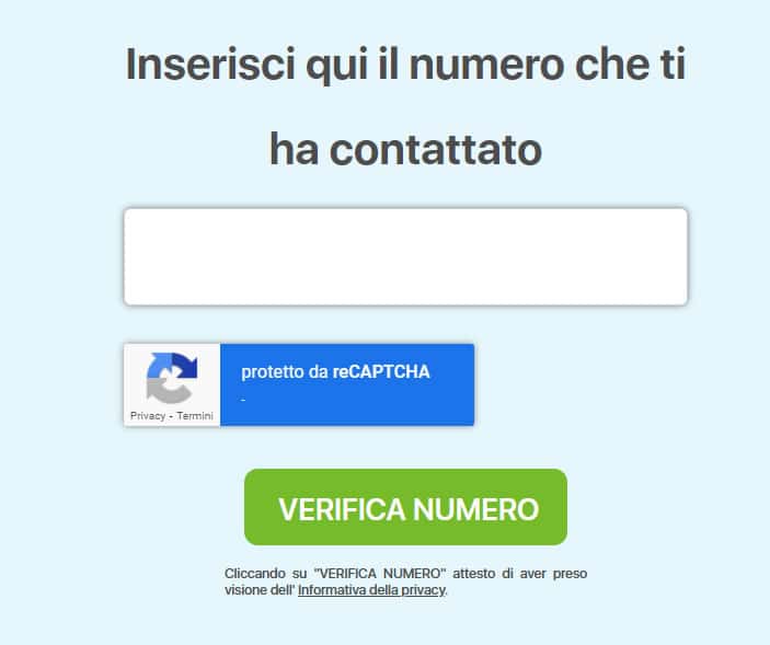 Se hai ricevuto una telefonata da parte di qualcuno che si spaccia per un consulente di Convergenze ma il tono della telefonata ti ha insospettito, inserisci il numero di telefono all’interno di questo modulo di verifica e clicca sul pulsante Verifica numero.